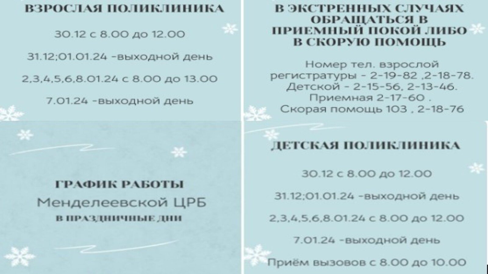 График работы ГАУЗ "Менделеевская ЦРБ" в выходные дни