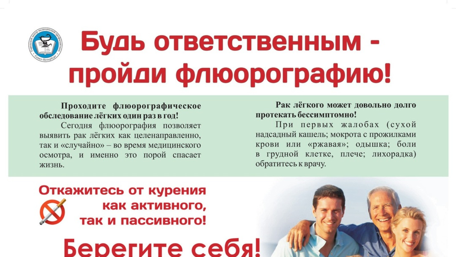 В рамках Всемирного дня борьбы с туберкулезом с завтрашнего дня в Татарстане пройдут профилактические акции. Все желающие смогут пройти бесплатное флюорографическое обследование на передвижных рентгеновских аппаратах. Казань: 25 марта, с 09.00 до 14.00 - ТРЦ «Тандем» (ул. Ибрагимова, 56); 26 марта, с 10.00 до 15.00 - ТЦ «Мега Казань» (Проспект Победы, 141). Набережные Челны: 31 марта, с 10.00 до 14.00, ТЦ «Омега» (Проспект Сююмбике, 2/19 с).