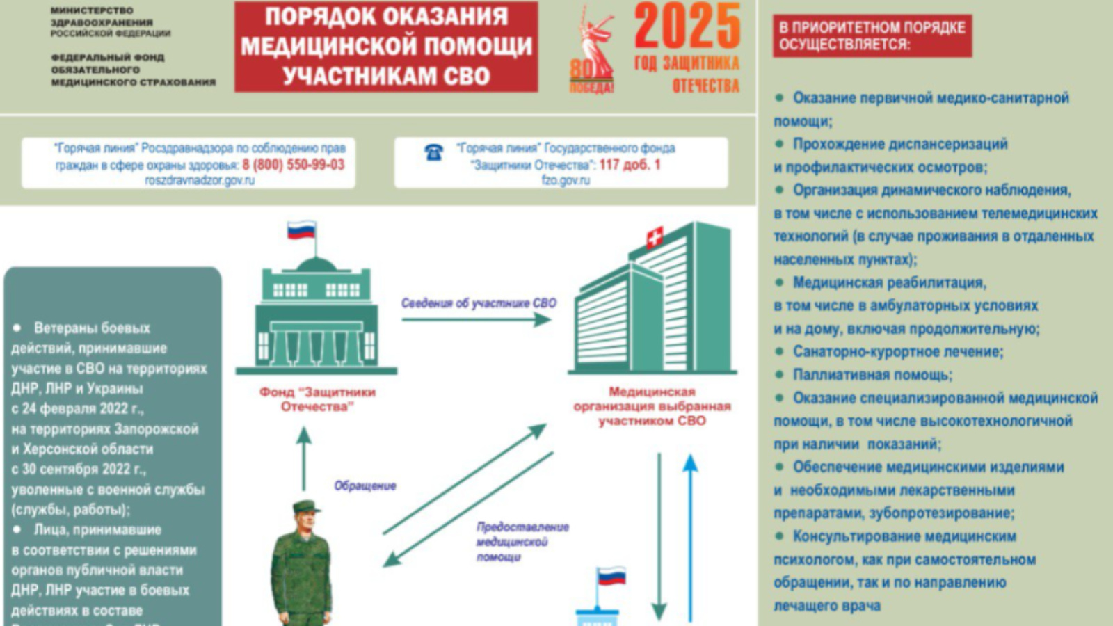 Бесплатно и во внеочередном порядке участникам СВО окажут: